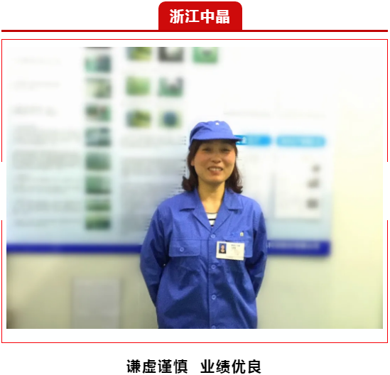陈惠芳,在品质保证部硅片检验岗位工作,2014年3月入职。曾获2018年度优秀员工。