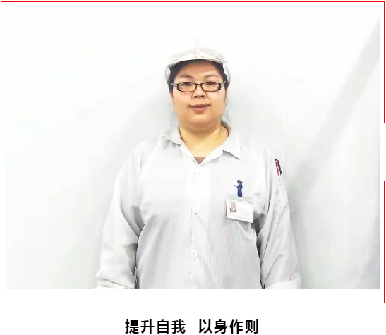 作为品质保证部的一名基层干部,她在部门负责人的支持与帮助下,严格要求自己,带领班组取得了较好的业绩。工作中,她不断提升对产品品质的追求,她认为基层干部应该做好基层员工和部门负责人的纽带,精心监管、悉心宣传,把产品质量深入到每位员工心中,同时也要将员工的声音传递给部门负责人,促进部门内部的交流与发展。相信她一定能不负众望,在今后的工作中更加尽心尽力,成为更多员工的榜样!